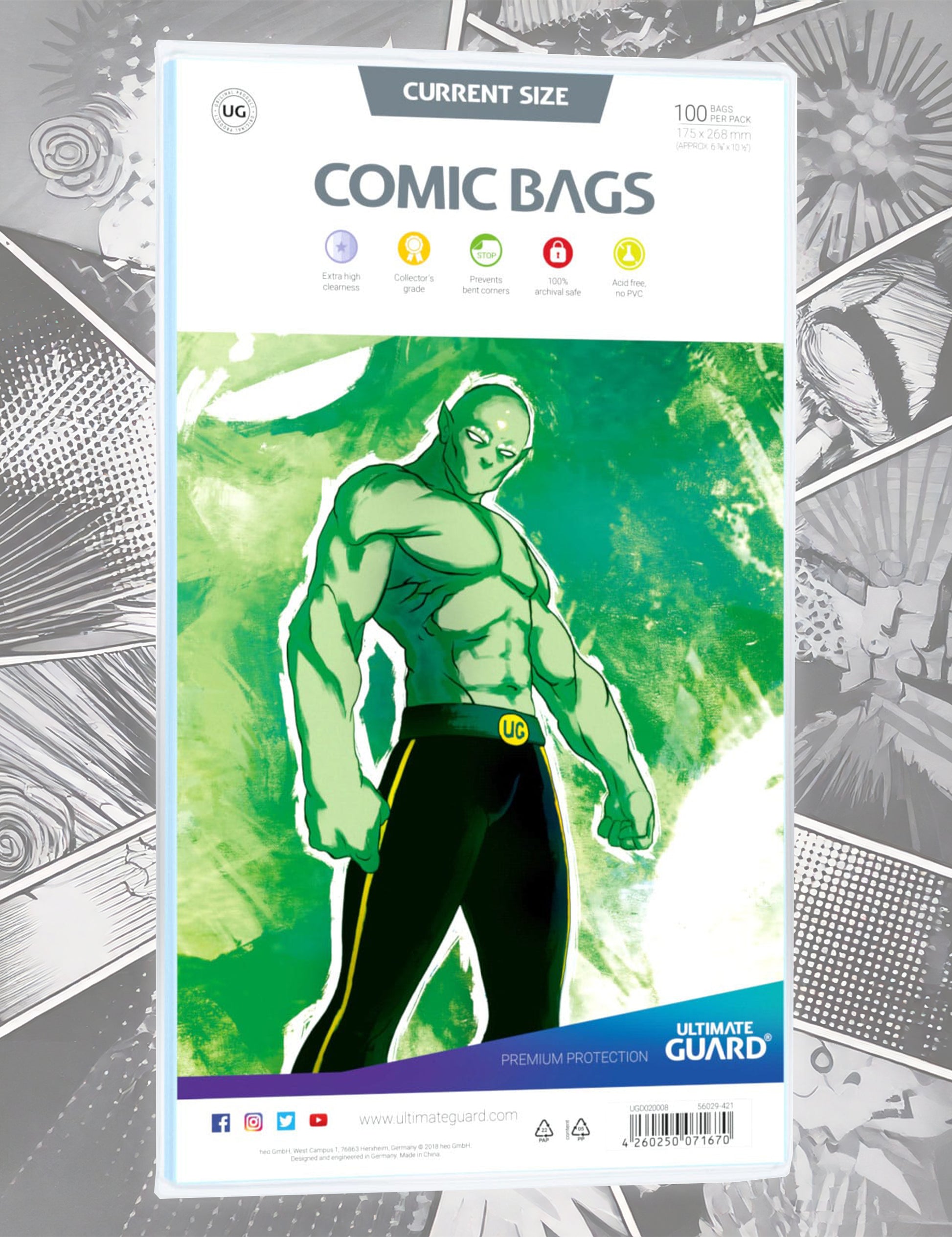 100 hochwertige Schutzhüllen für Comics mit einer Größe bis zu 175 x 268 mm (6 7/8 x 10 1/2 inches).